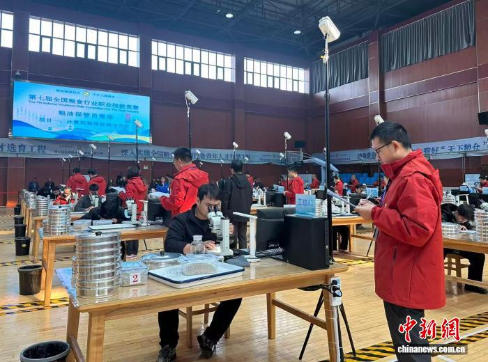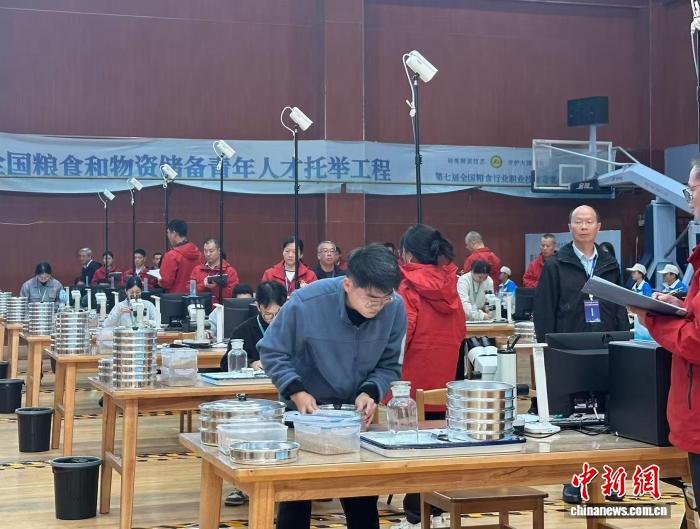 11月4日,第7届齐邦食粮止业事业技巧竞争正在河北郑州落幕。34收代替队的354实选脚盘绕粮油保存员、粮油量量检查员二个工种7个名目停止技巧较量。图为第7届齐邦食粮止业任务技巧角逐现场。王好宁 摄