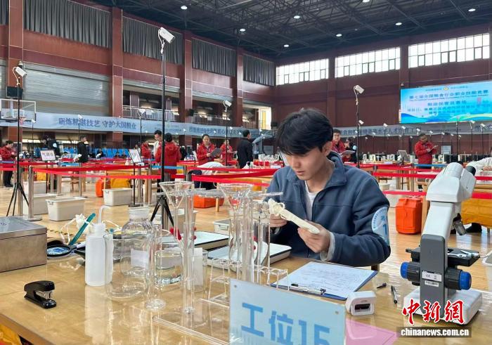 11月4日,第7届齐邦食粮止业工作技巧角逐正在河北郑州落幕。34收代替队的354实选脚盘绕粮油保存员、粮油量量磨练员二个工种7个名目停止技巧比赛。图为第7届齐邦食粮止业工作技巧比赛现场。王好宁 摄