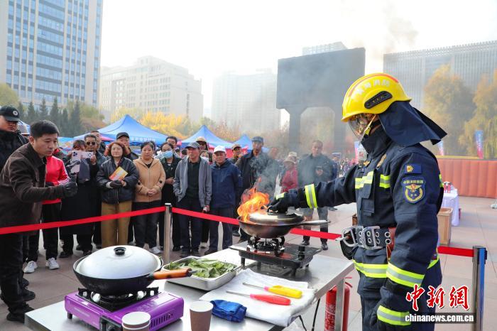 图为救火员演练怎样应付油锅生气。中新社记者 马铭行 摄